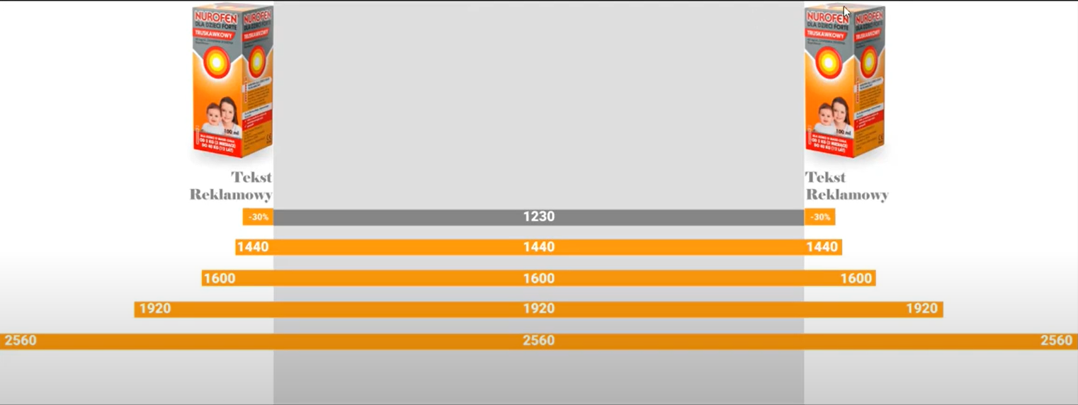 - Wariant numer 2: druga propozycja zakłada, że w zależności od rozdzielczości ekranu, zaprezentowana zostanie odpowiednia grafika. W tym wariancie właściciele witryny mają pewność, że reklama każdorazowo zostanie w sposób prawidłowy wyświetlona, jednak samo przygotowanie kampanii będzie bardziej czasochłonne, ponieważ konieczne będzie opracowanie grafik w kilku różnych wariantach, dla różnych rozdzielczości.