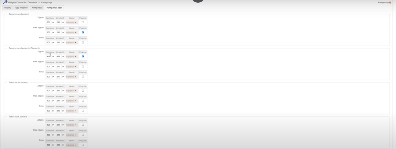 Wtyczka została wyposażona również w dodatkową funkcję, jaką jest konfiguracja zdjęć. Dla każdego typu widgetu oraz wszystkich jego elementów istnieje możliwość ręcznego skonfigurowania rozmiarów wyświetlanych obrazów. Dzięki temu rozmiar grafik prezentowanych za pomocą tego samego widgetu na różnych stronach w witrynie może zostać dopasowany do układu graficznego pozostałych elementów.