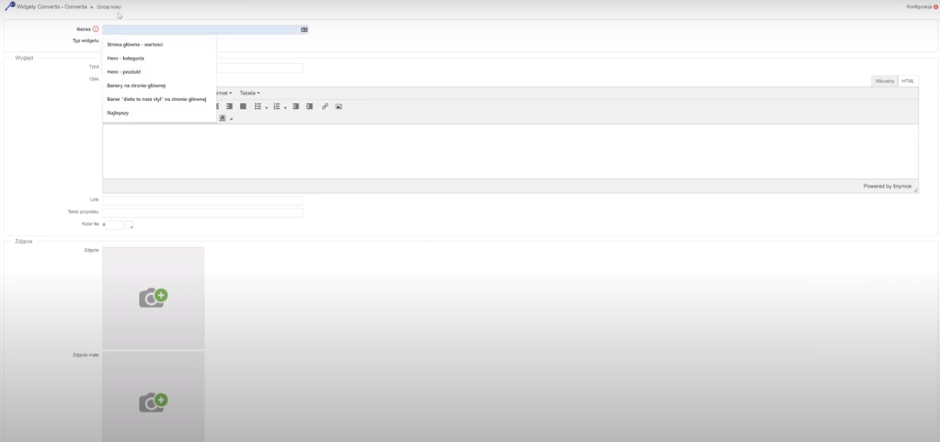 - określić nazwę widgetu – nazwa nie zostanie wyświetlona w sklepie internetowym. Widoczna będzie tylko z poziomu panelu zarządzania w celu usprawnienia działań administracyjnych;