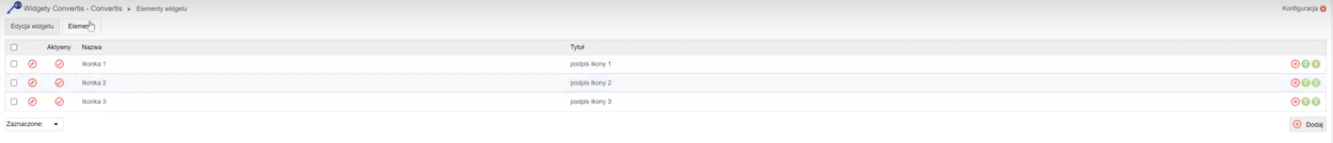 - zdefiniować elementy – jeżeli typ widgetu nie przewiduje, że dany blok będzie składał się z kilku elementów, to ta opcja nie będzie widoczna. Po skonfigurowaniu elementów widget jest gotowy do implementacji na stronie.
